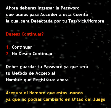 Si presionas el Nº 1 proseguiras con el Ingreso de tu Contraseña la cual será la clave de acceso a tu cuenta cuando quieras ingresar al Servidor.